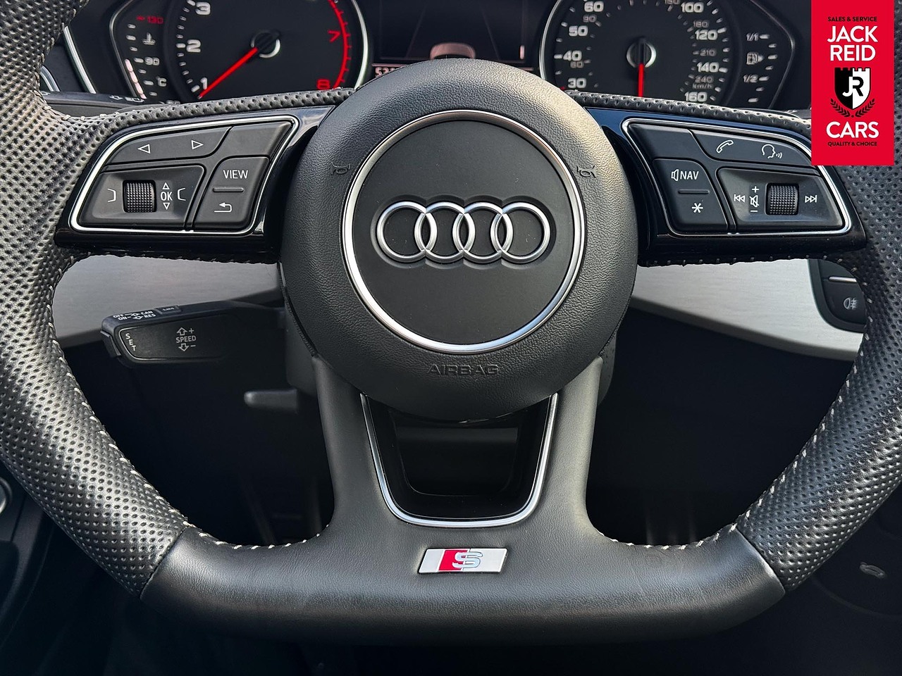 . Flat bottomed leather steering wheel.